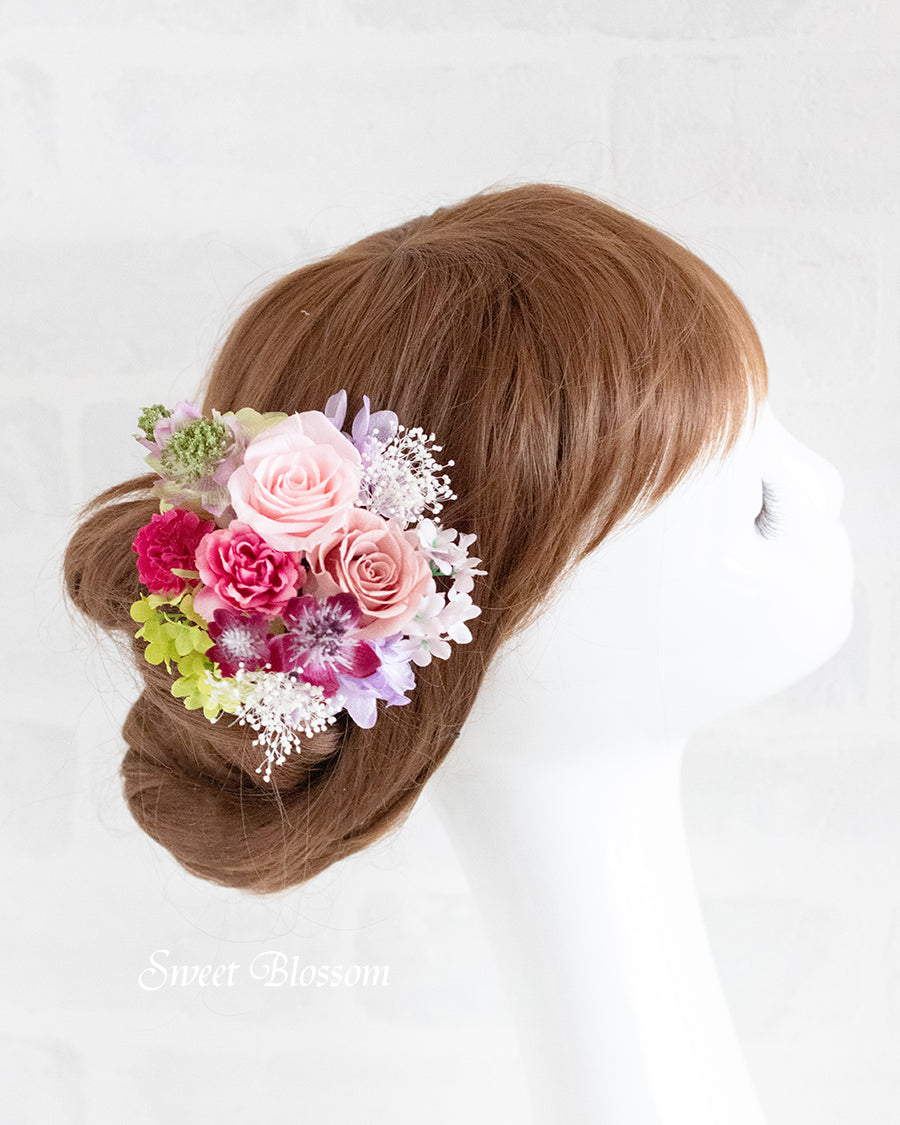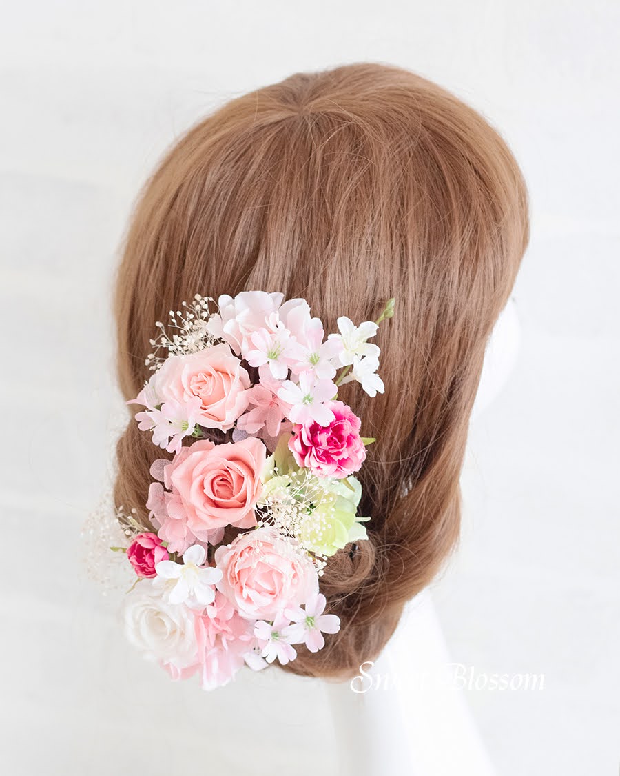 ひとつずつピン状にしておりますので、ヘアアレンジに合わせてお好きな組み合わせで挿し替えしていただくことができ、ダウンスタイルやアップスタイル、細かい編み込みアレンジにも対応可能です。