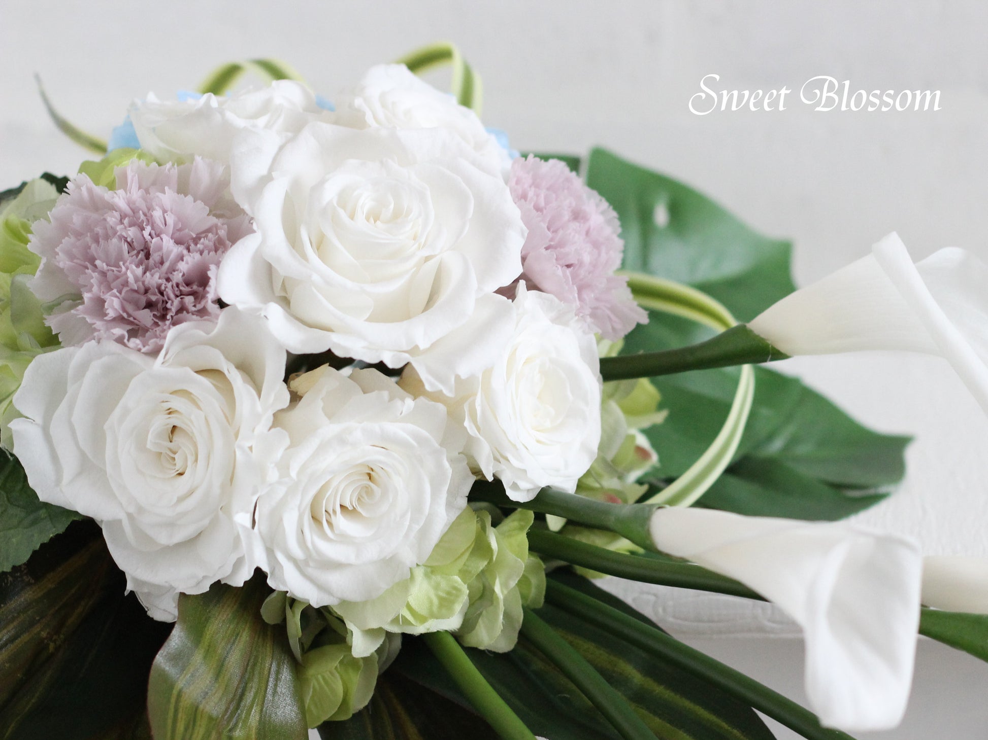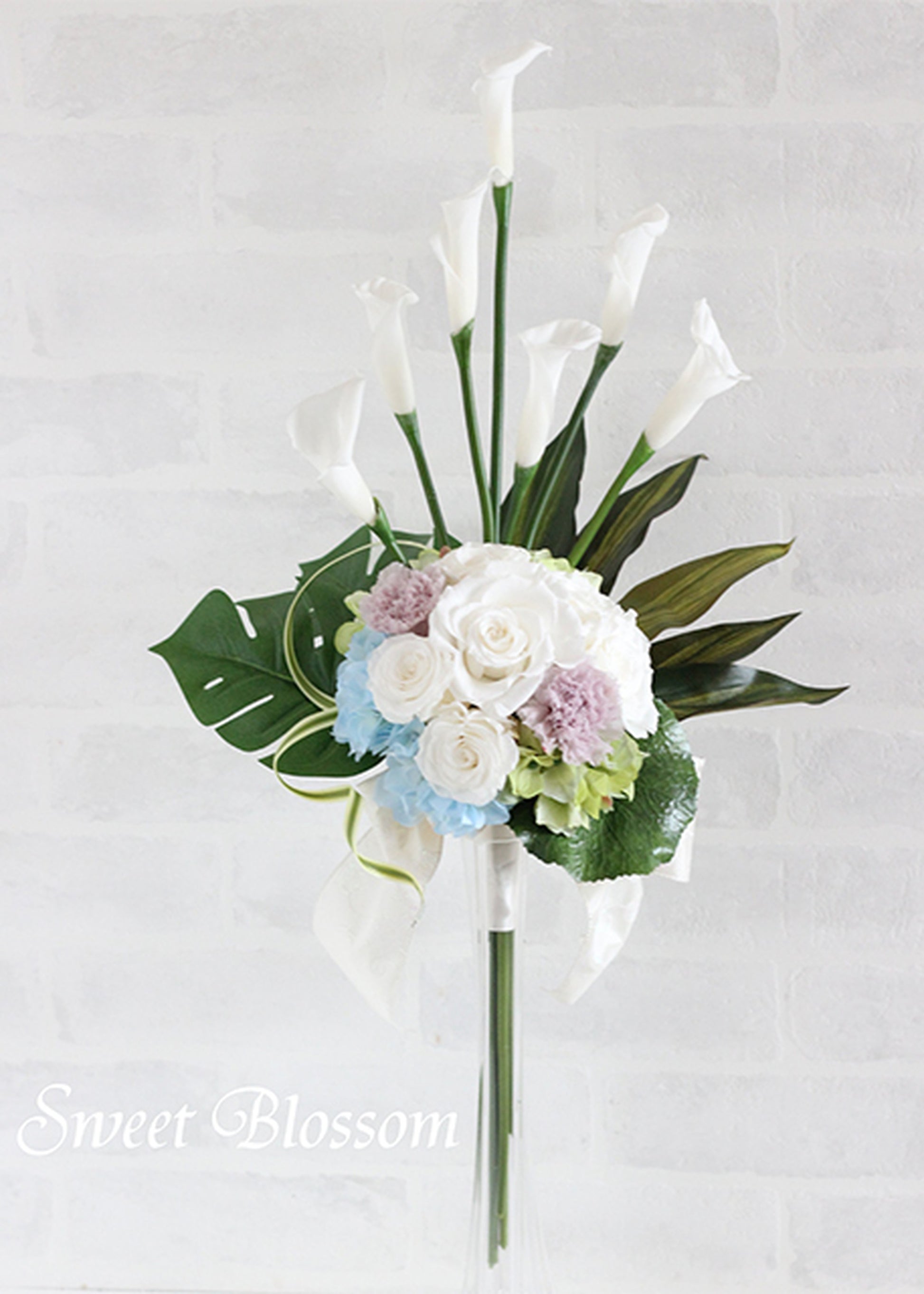 掲載写真と同じブーケのご希望も承りますのでご注文前にお問い合わせください。(但し作品に使用している花材が廃盤やリニューアル等により花材は代替品を使用することがございます。)