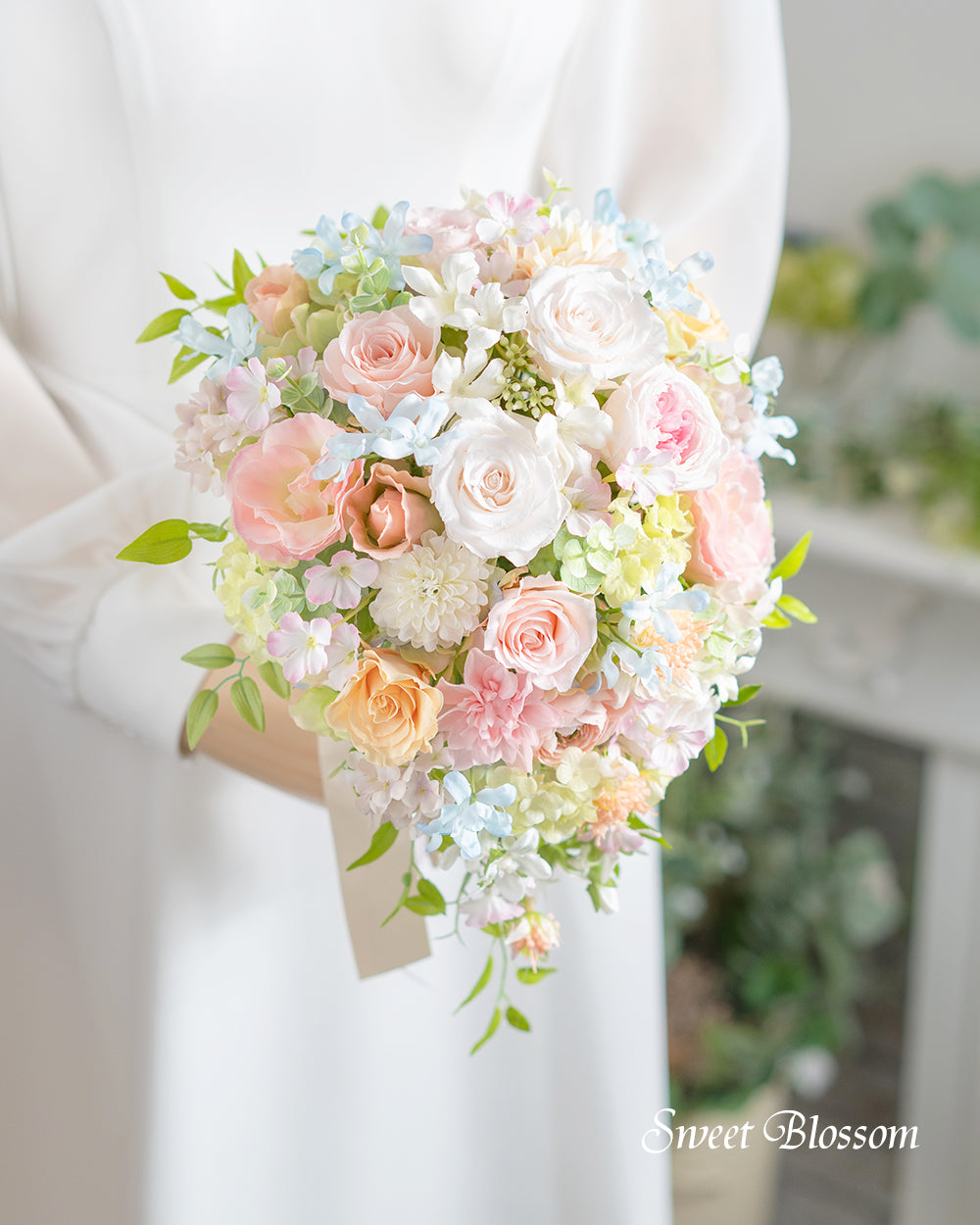 【ブリザーブドフラワー】クリームピンクのティアドロップブーケ