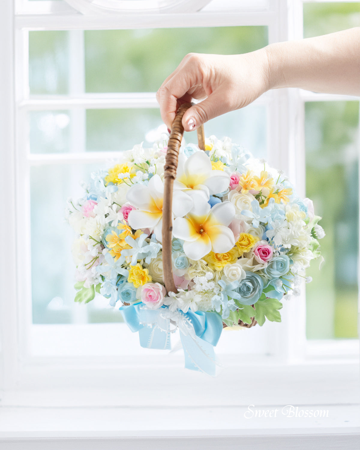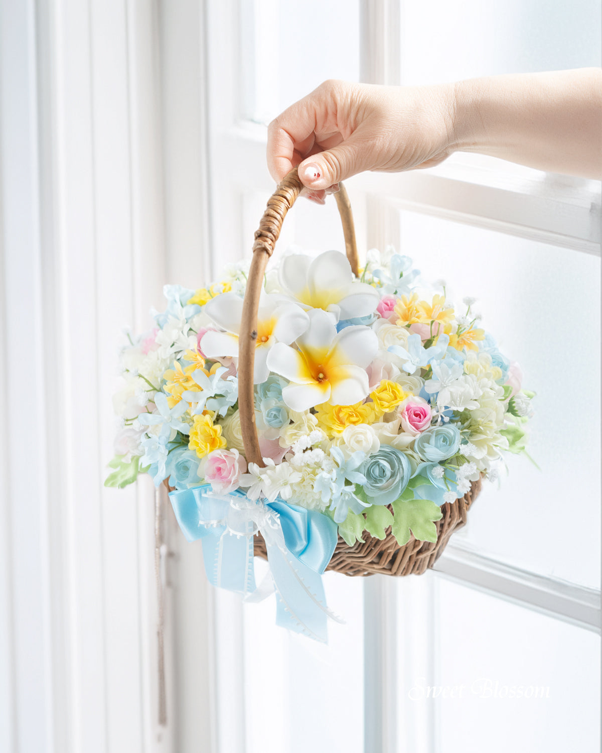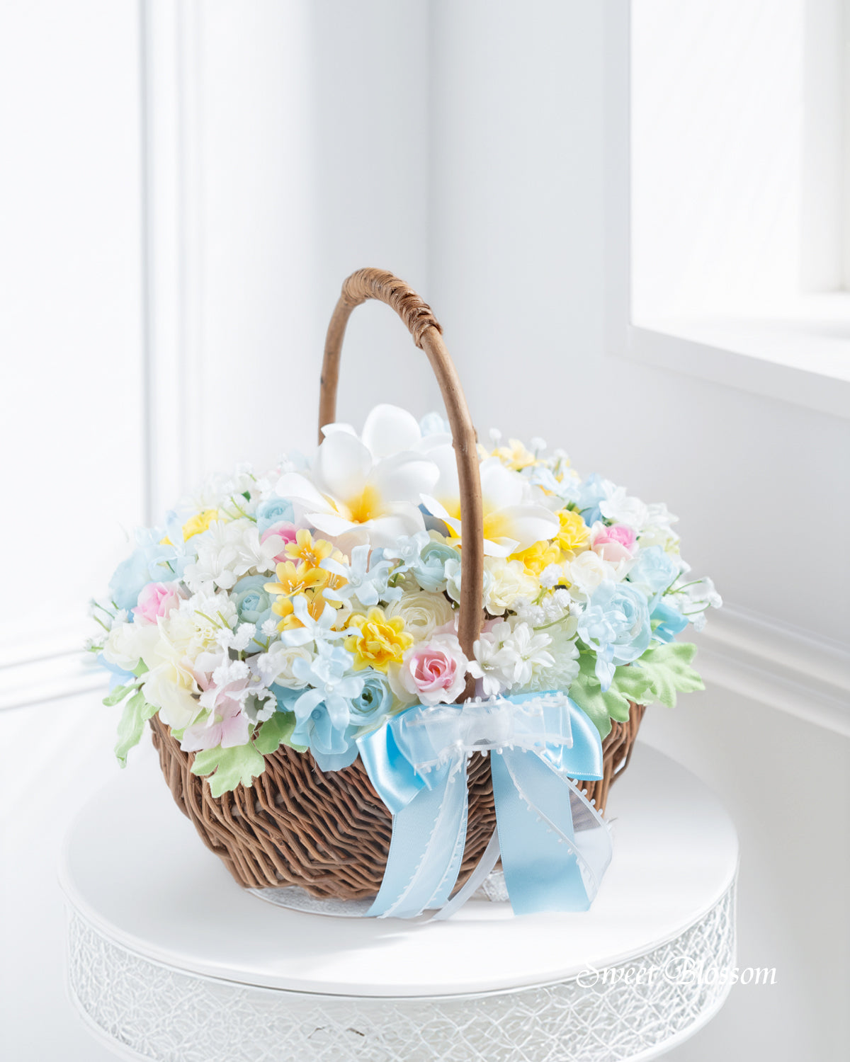 【アーティフィシャルフラワー】プルメリアのバスケットブーケ