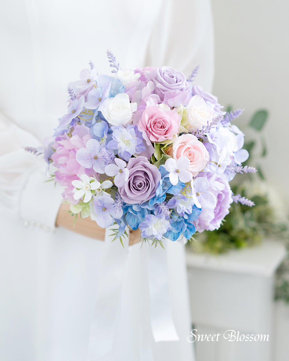 掲載写真と同じブーケのご希望も承りますのでご注文前にお問い合わせください。(但し作品に使用している花材が廃盤やリニューアル等により花材は代替品を使用することがございます。)
