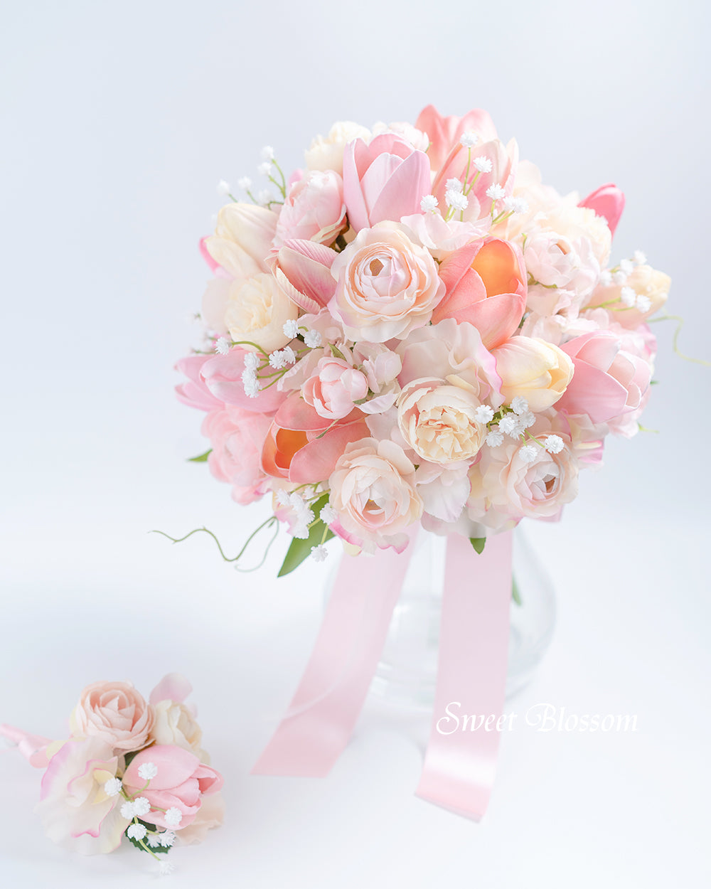 【アーティフィシャルフラワー】チューリップとラナンキュラスのクラッチブーケ