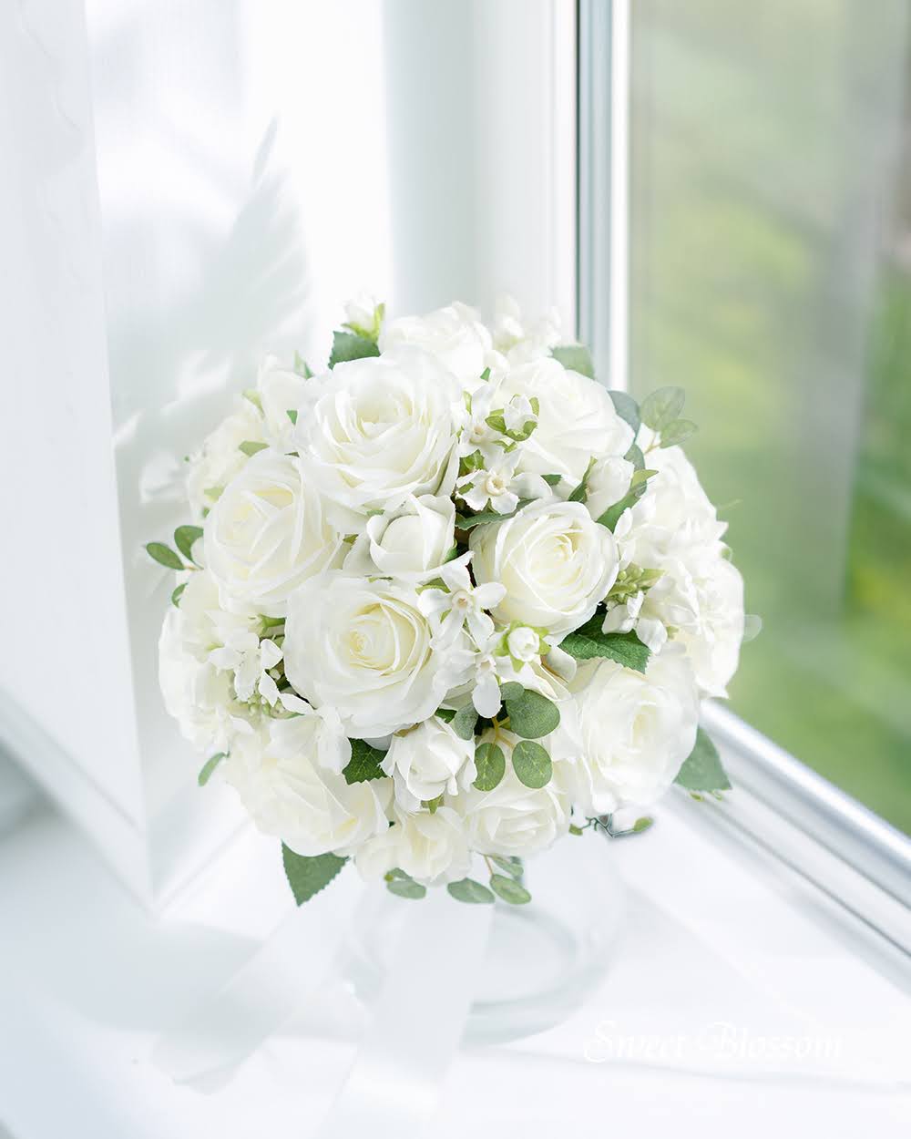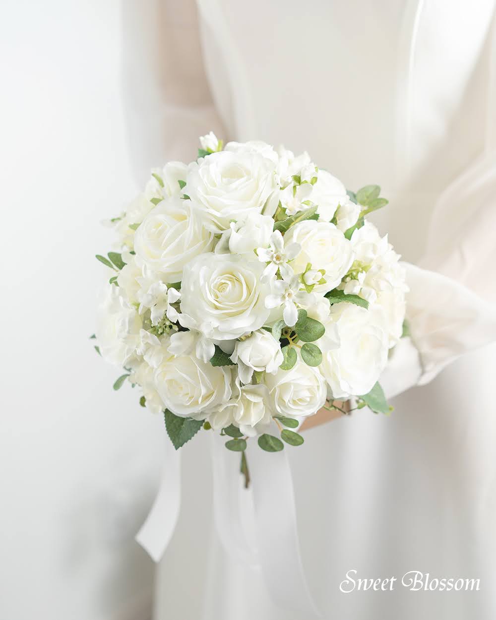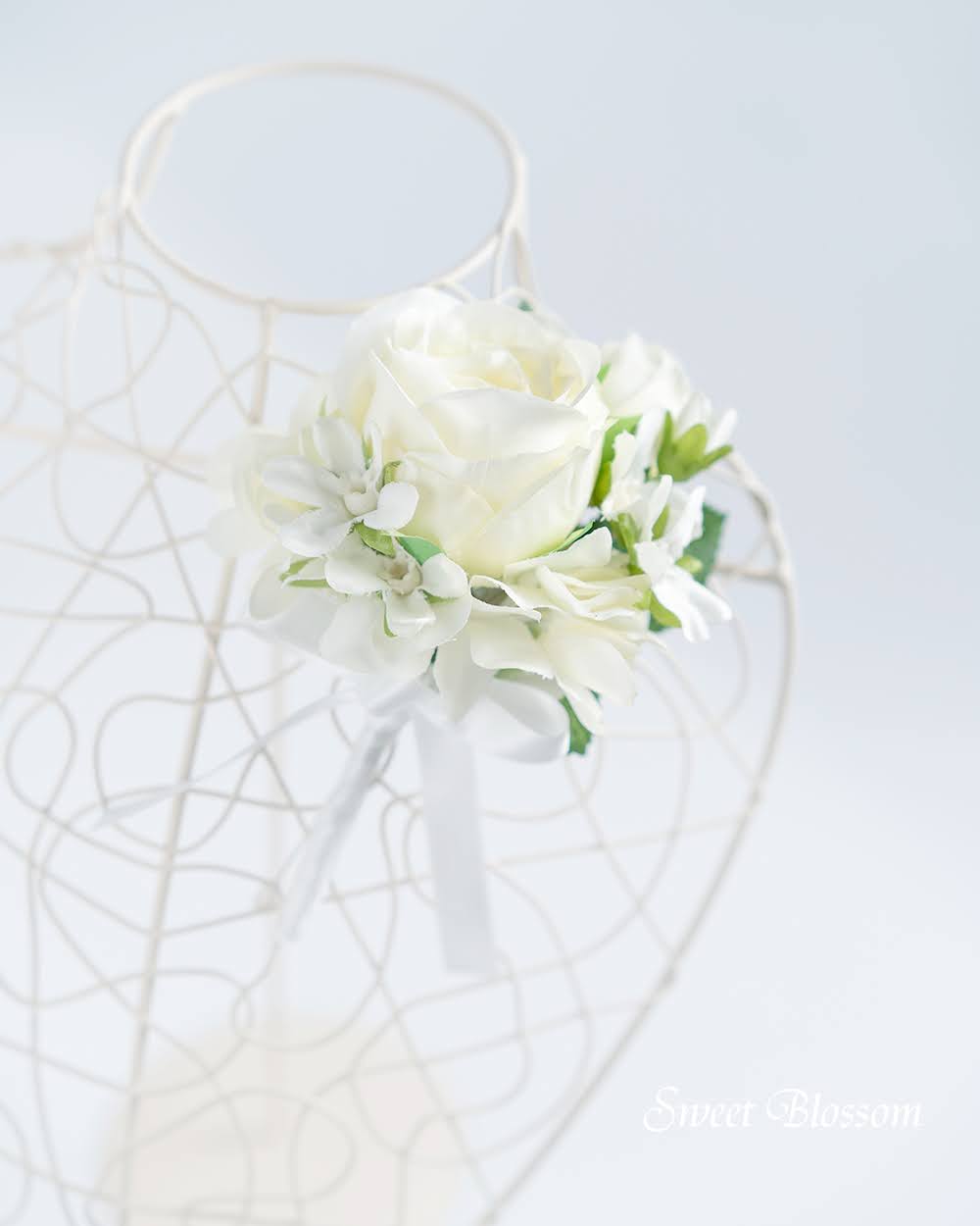 【アーティフィシャルフラワー】ホワイトローズのクラッチブーケ