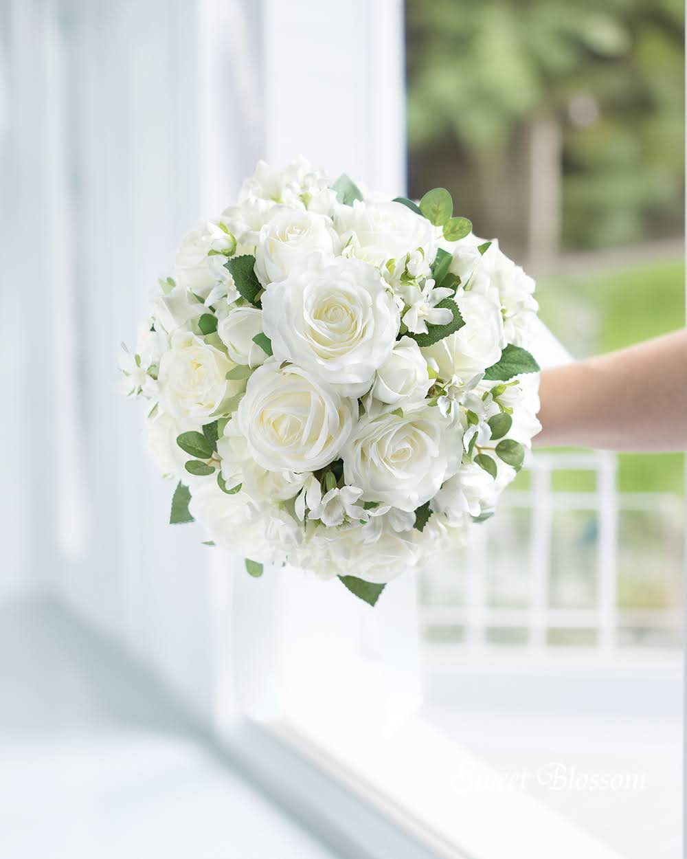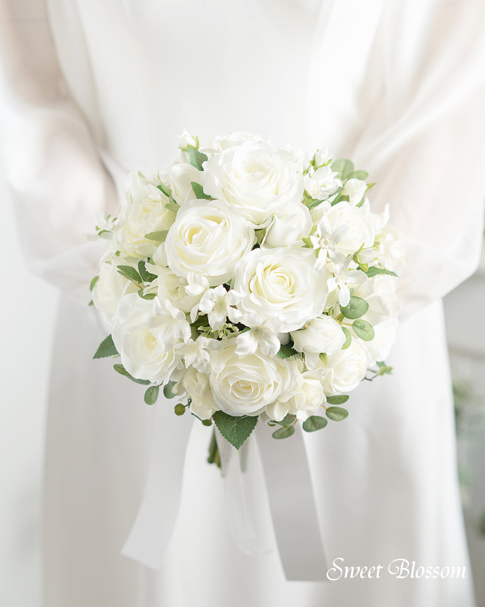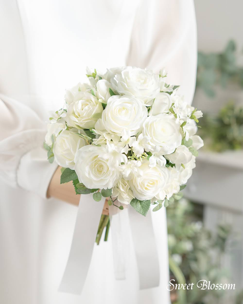 【アーティフィシャルフラワー】ホワイトローズのクラッチブーケ